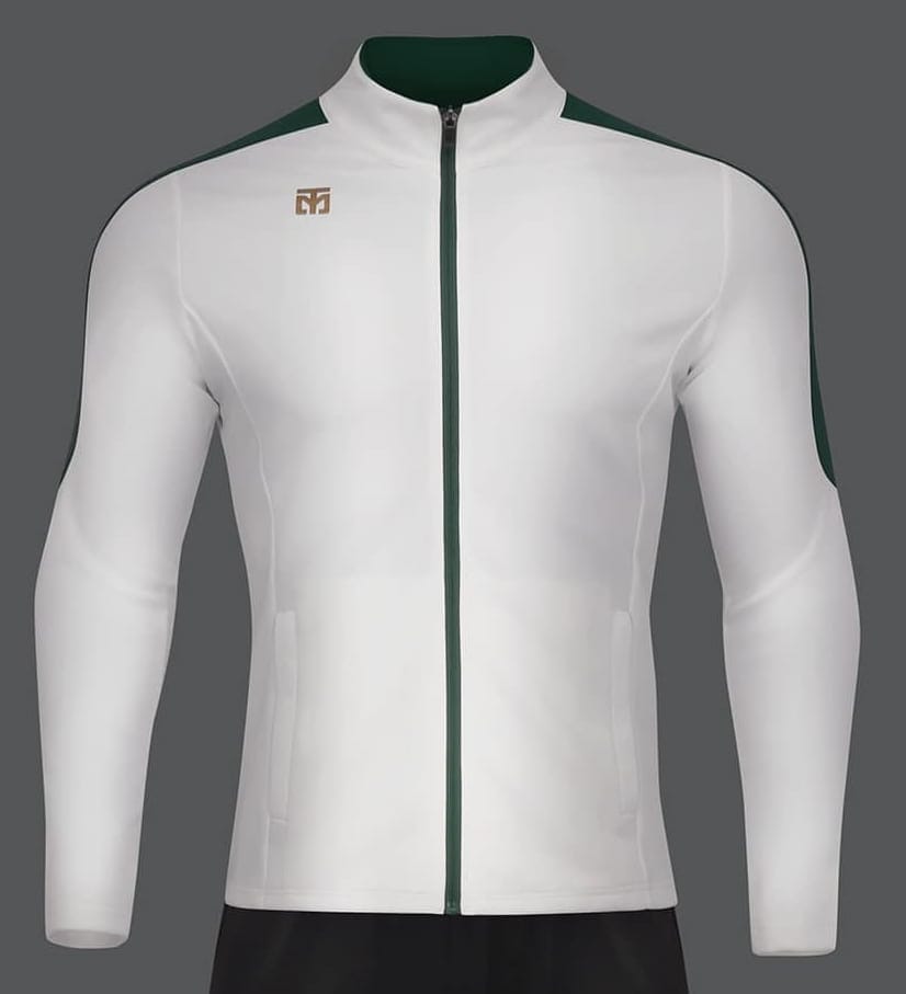 Slim Line Jacket Blanca Verde Mooto — Ropa Deportiva Oficial Mooto para Artes Marciales