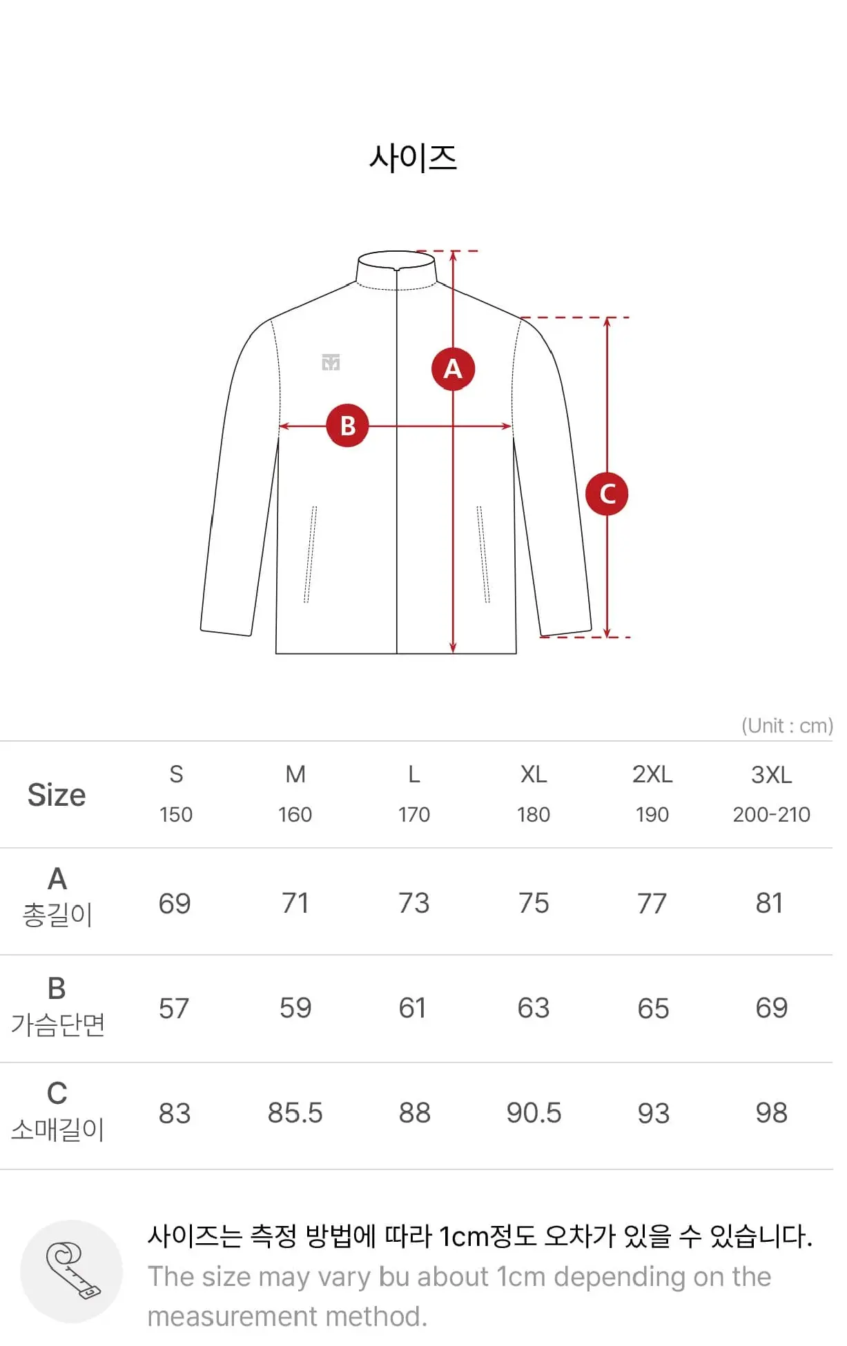 | Talla | 150 S, 160 M, 170 L, 180 XL, 190 XXL, 200 XXXL |