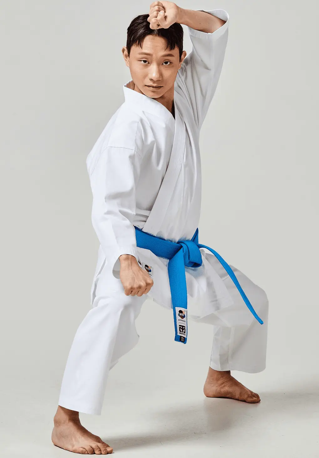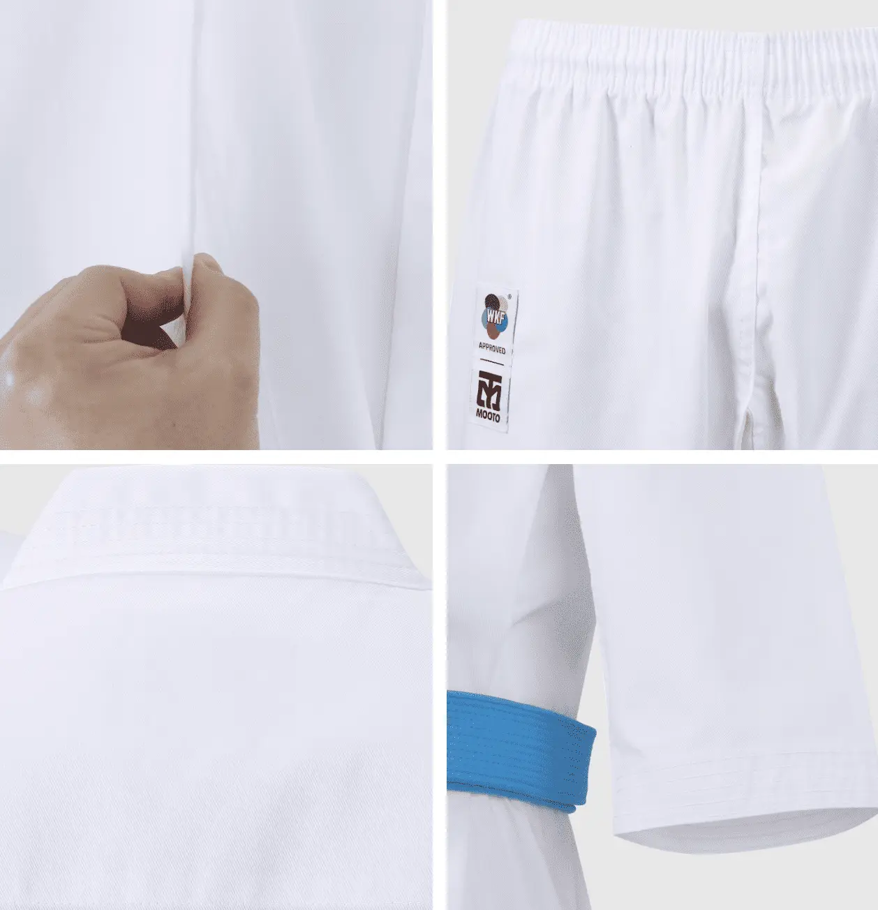 Karategui Mooto Básico Iniciación Original – El estándar de calidad coreana para todas las edades. Disponible en un rango completo desde 110 cm hasta 200 cm, este uniforme ofrece la ligereza y resistencia necesarias para comenzar con éxito en el Karate.
