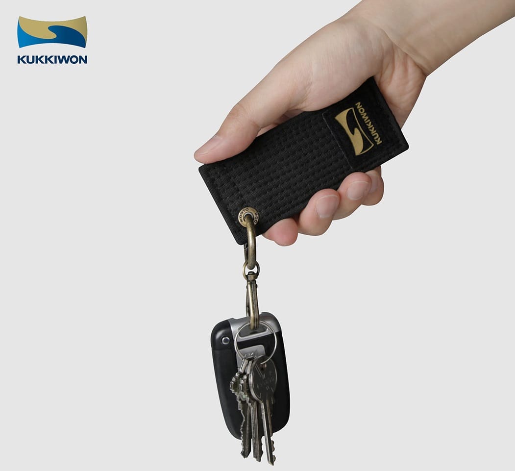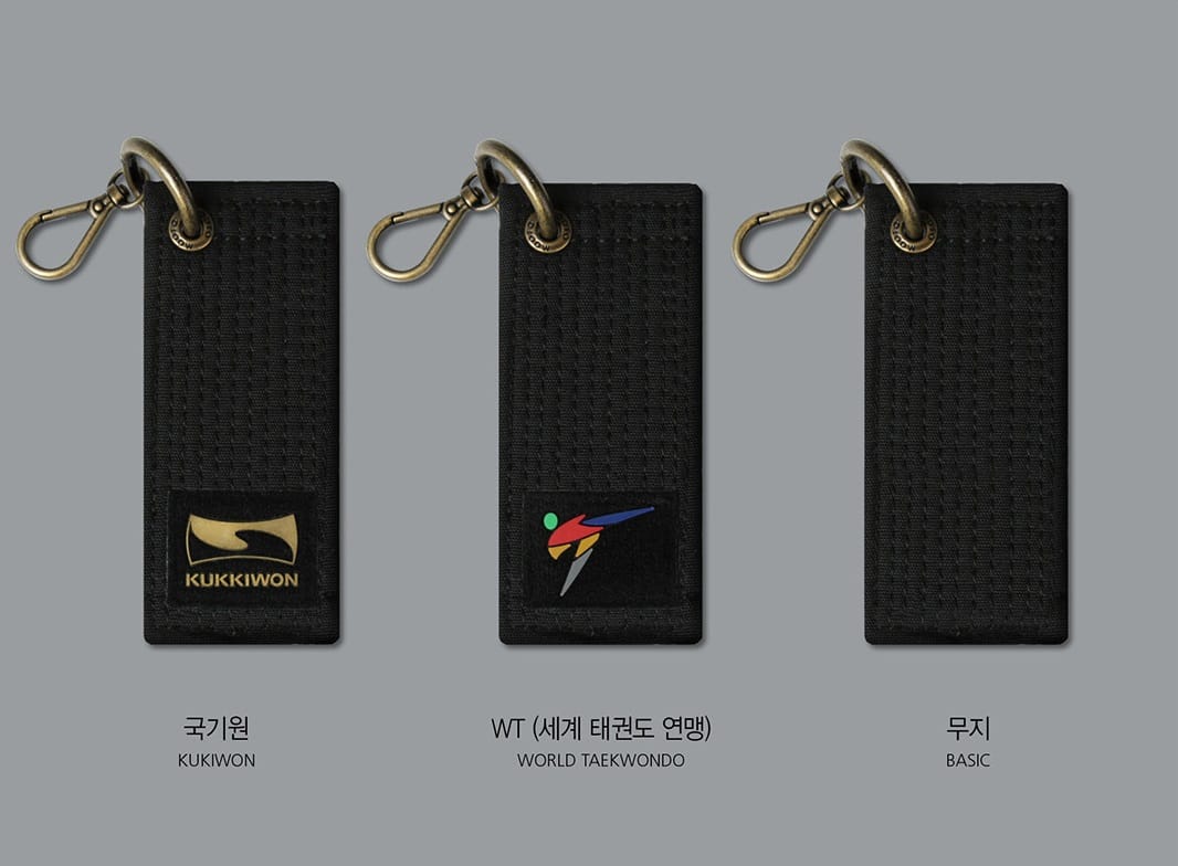 Mini cinturón negro,  posibilidad de llevar las llaves o colgarlo de una prenda, en tres versiones, cinturón negro, cinturón Kukkiwon, cinturón Federación Mundial